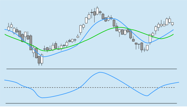 Der MACD Indikator wird in der technischen Analyse von Börsenkursen eingesetzt und besteht im Wesentlichen aus zwei Linien, die um eine Nulllinie schwanken. Der Verlauf der beiden Linien gibt Aufschluss über den aktuellen Trend. Kreuzen sich die beiden Linien, deutet dies auf einen Trendwechsel hin. Einige Trader nutzen den MACD Indikator auch zum Eröffnen und Schließen von Trading Positionen.